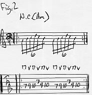 And the improvement was quick enough where it was exciting for meknowing that one day I could play it at this speed, and the next day I could play it faster. And I could feel it in my hands; the confidence and authority was building up. But the hardest thing about fast picking is to go from string to string, so for crossing over two strings I practiced this one [plays Fig. 2], which uses what I call outside picking.